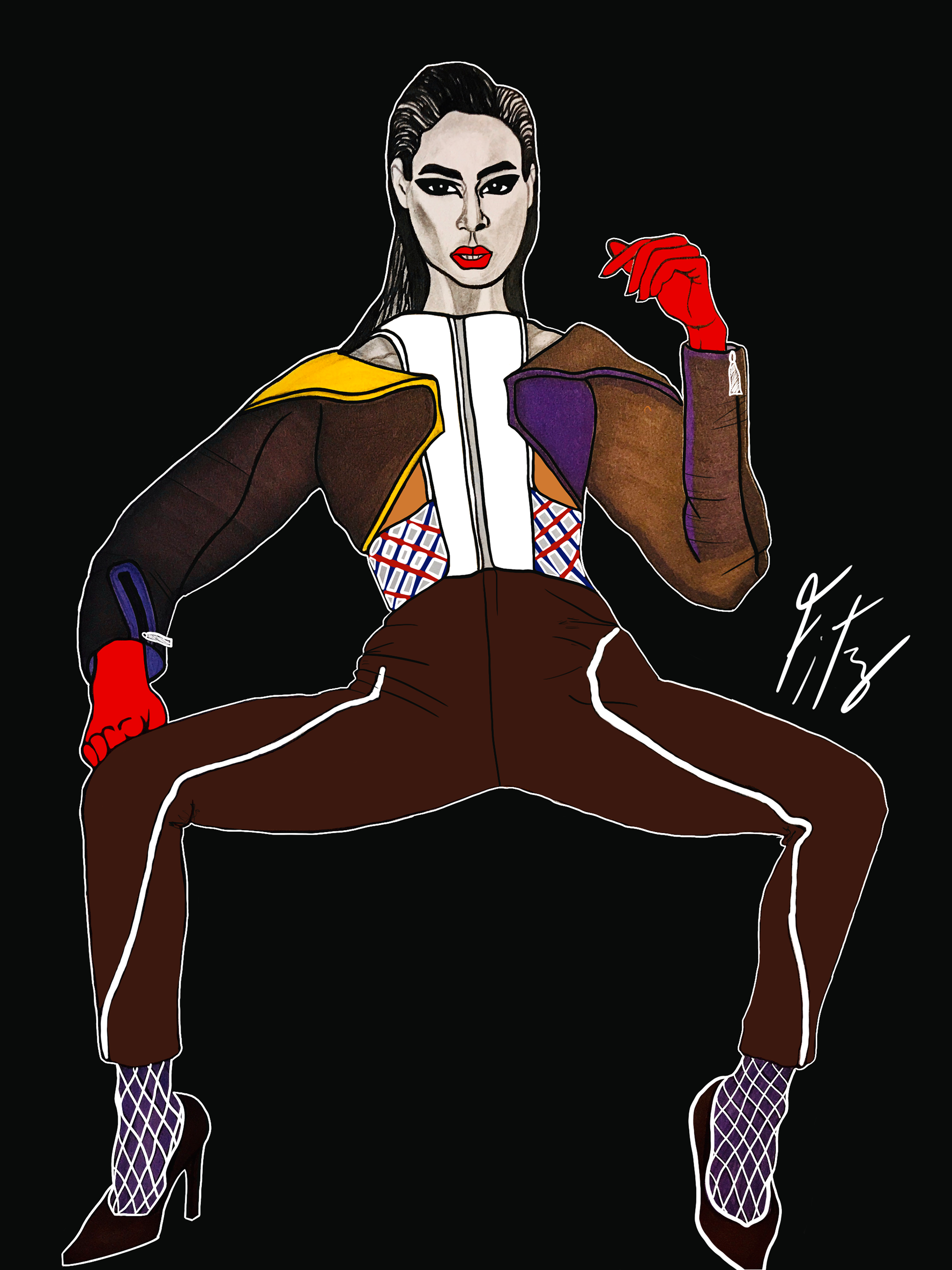 Inspired by runway model Joan Smalls, this design emphasizes garment reconstruction and color theory. The result is a seamless, alluring, and innovative piece.